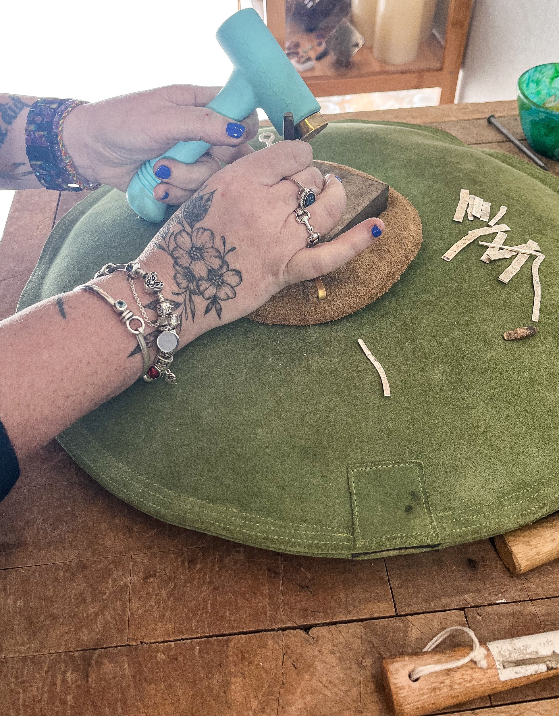 You’ll learn how to shape the metal, stamp the metal, solder (if you are an adult), sand, polish and blacken the metal.
